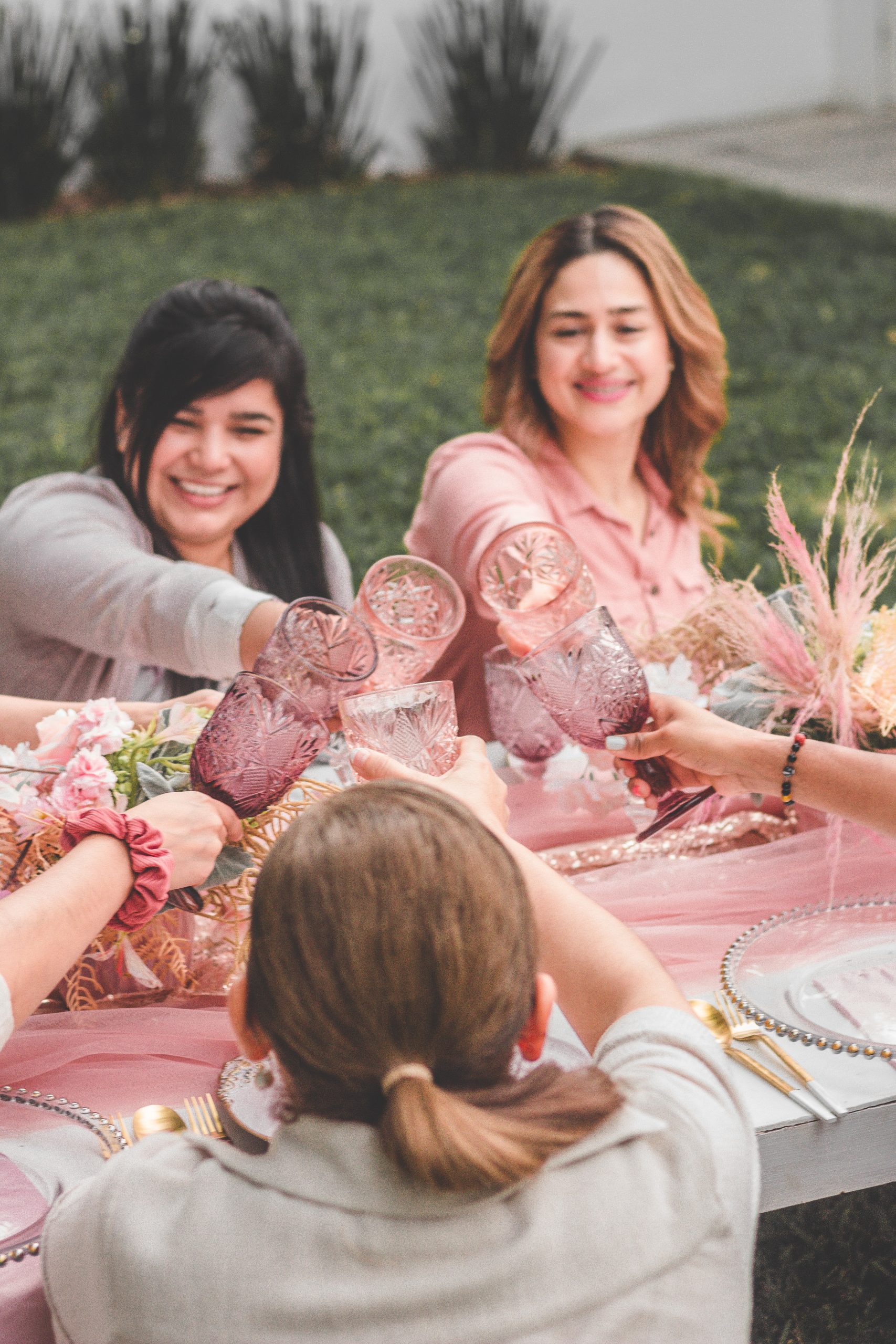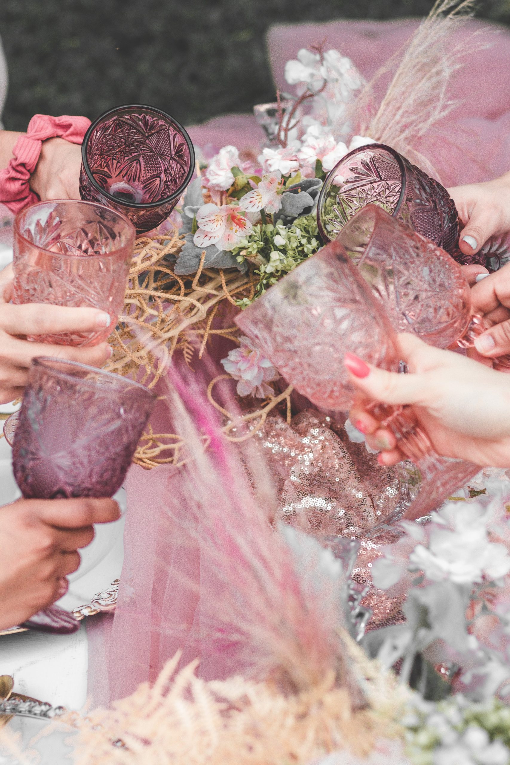 Links to buy the decor:  Sequin Table Runners  |  Blush Table Runners  |  Rose Gold Flatware  |  Pampas  |  Pink Goblets