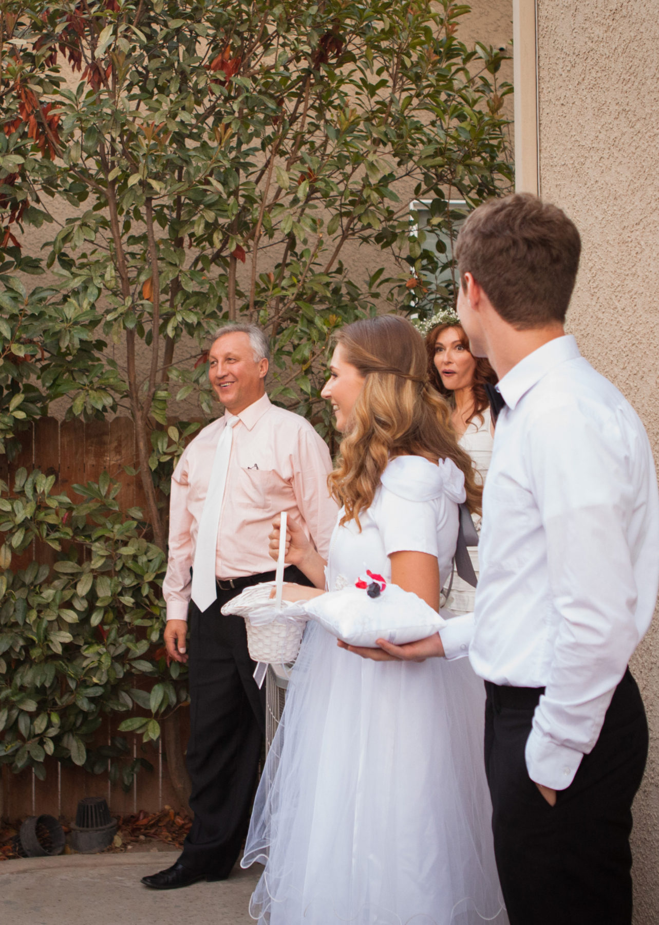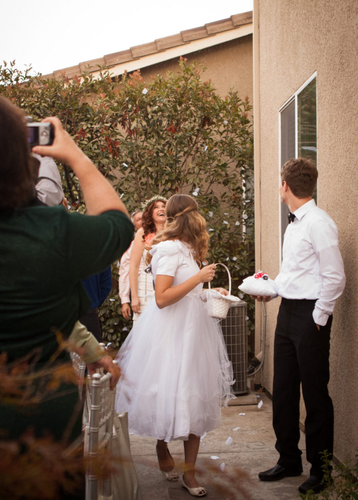 Afterward the initial surprise they proceeded down the aisle filled with flower petals. And yes that is me, a 22 year old at the time in a flower girl dress that I found in good will. My shy bother was nice enough to be the ring (pop) bearer and that handsome officiant is my husband. As a family, we witnessed our parents renew their vows to each other and it was beautiful!