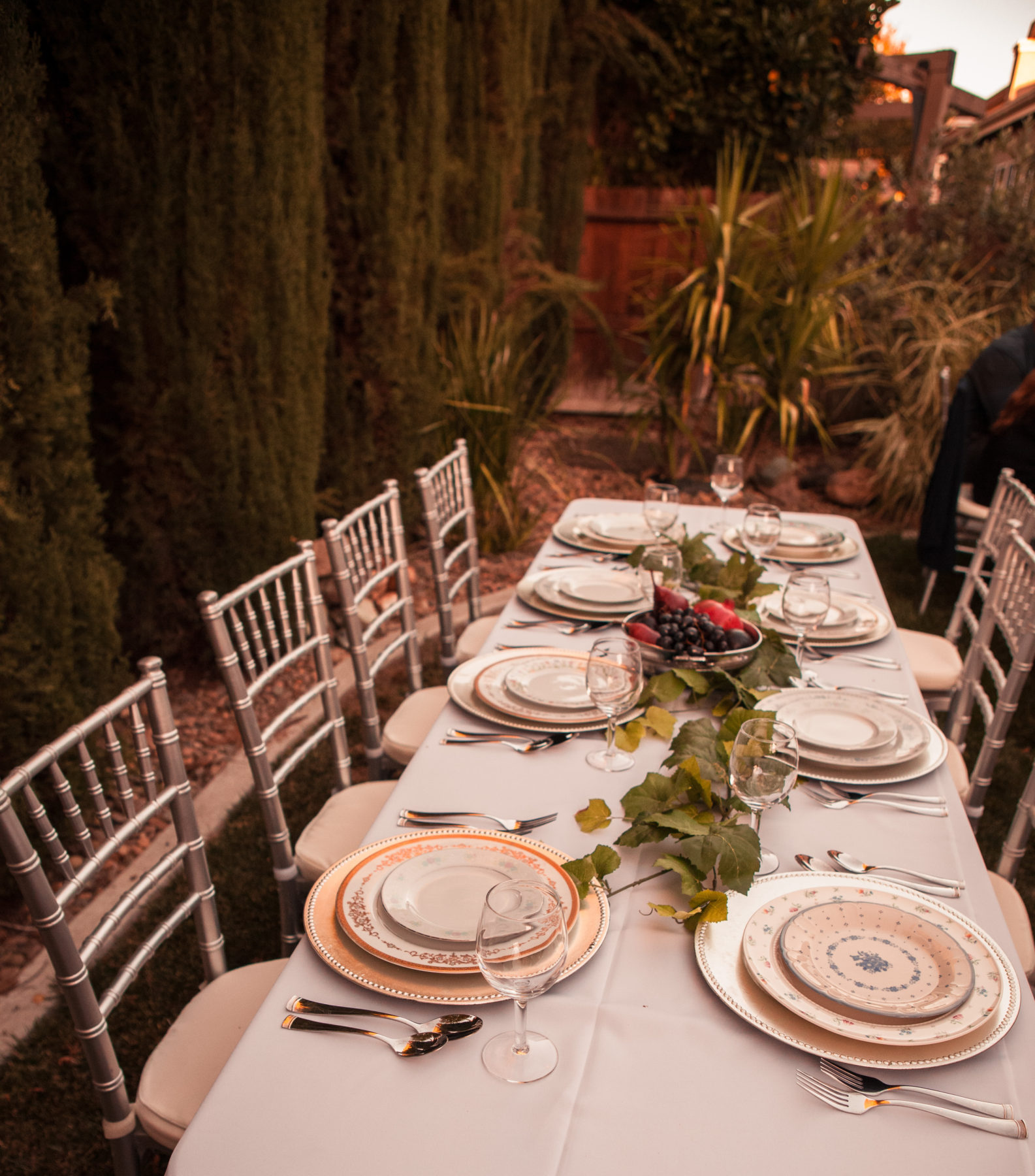 When planning an event of any kind, the main thing you want to focus on is reflecting the person or people being celebrated! That is exactly what I did with my parents 25th wedding anniversary! My mom and dad both love the tuscan style so without hesitation I designed the party accordingly. Since the 25th wedding anniversary is considered to be the silver wedding I opted for using silver accents here and there. And of course one the most important aspects of the decor was the grape vine table runners to make it feel like the guests are having dinner in tuscany!