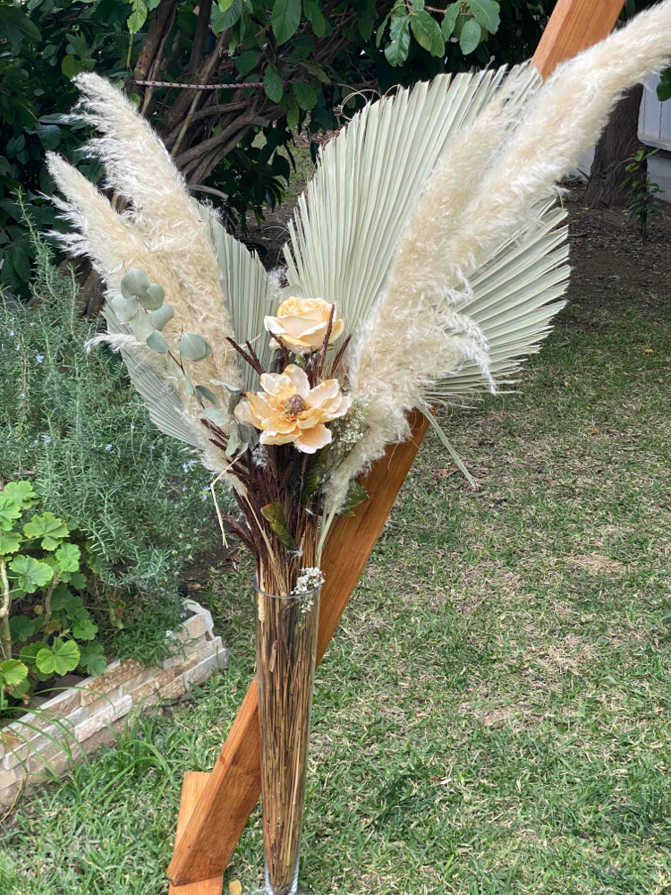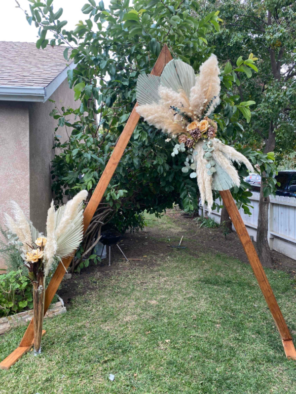 Beautiful stained pine Arbor for wedding. you can rent it with the decorations or add your own.