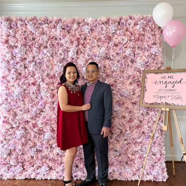 white flowerwall available as a backdrop for events. 8 x 8 feet.