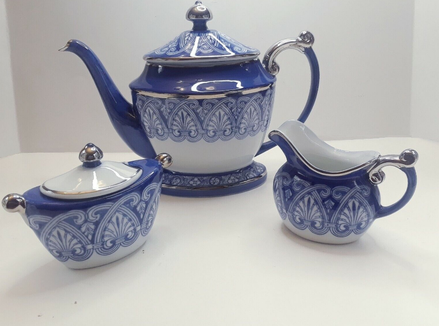 - Bombay Company Arabesque Tile Blue White China Teapot $55.00 each