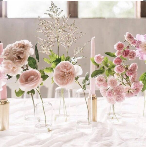 - Beautiful clear glass bud vases now in stock.