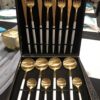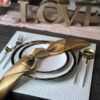 Utensils – Beautiful White and Gold utensils (fork, knife, big spoon, small spoon) in the set 4 pieces.