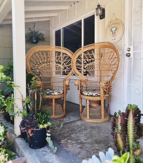 Classic vintage peacock chairs with ornate swirl peacock design. This listing is priced for ONE peacock chair. Rent one or both for the perfect sweetheart chair set. These gorgeous peacock chairs can be used in a variety of settings — from boho-inspired weddings to baby showers and photoshoots. Check out our inventory for more peacock chairs. Contact us for more available vintage furniture and decor!