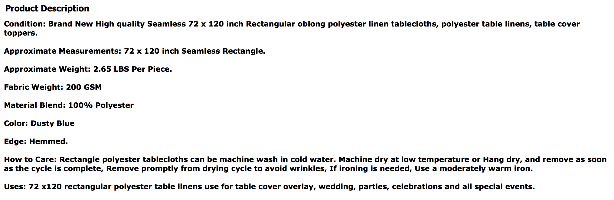 Be the first to review “72″x120″ Dusty Blue Tablecloth Rectangular Polyester”