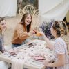 A textured table runner that adds a pop of color to any table setup. Great for weddings at sweetheart table and boho picnic setups!
