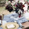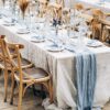 - Dusty Blue cheesecloth table runner with wrinkled gauze fabric.
