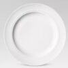 A simple porcelain plate with a beaded detail. Is versatile and can be used for any table setting.