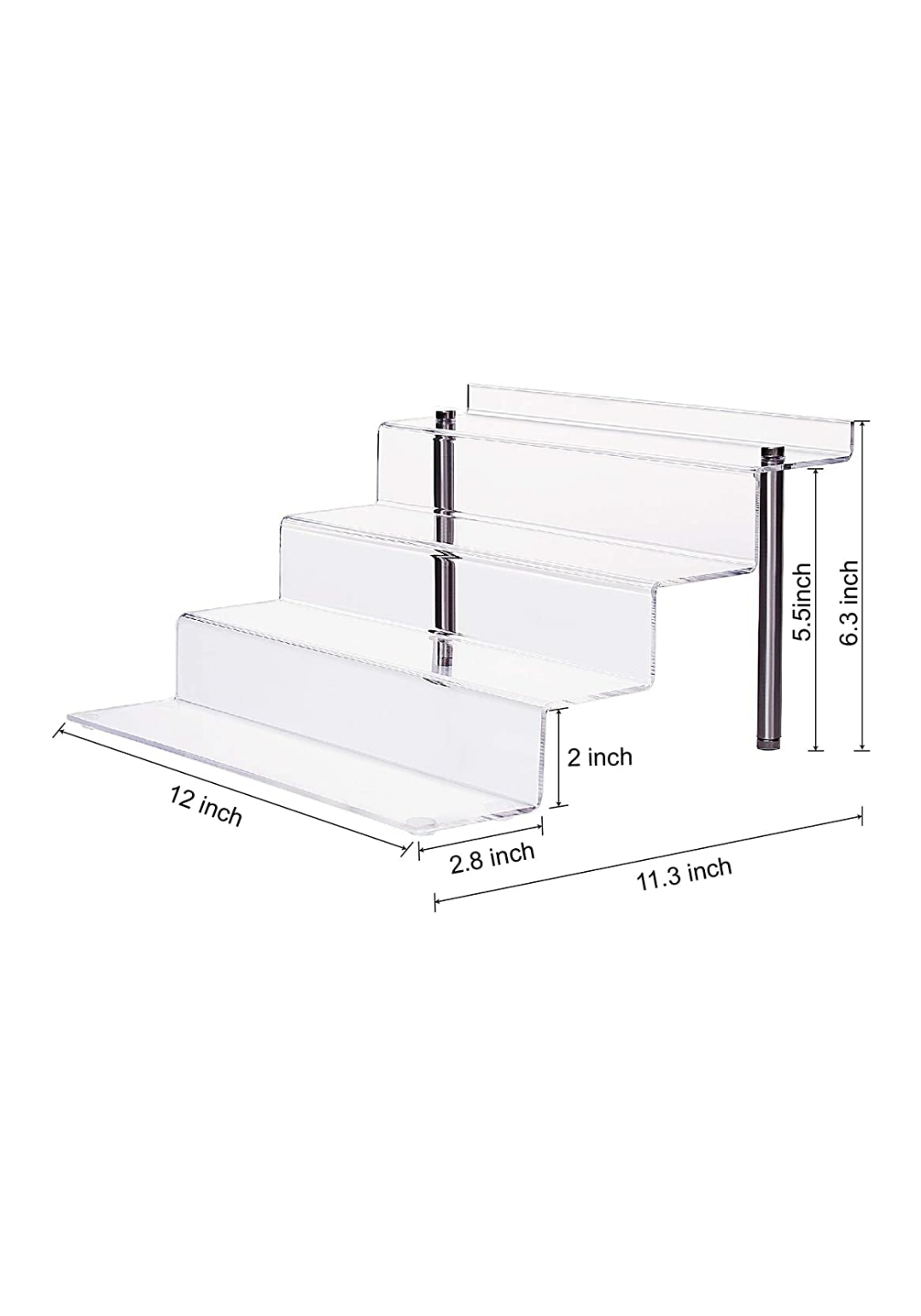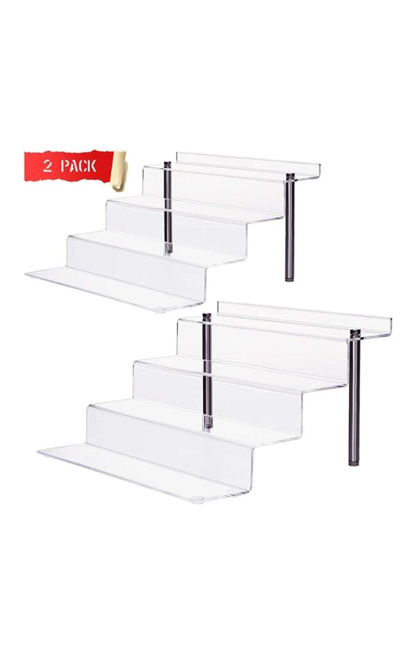 Acrylic Display Stand, Large 4-Step Clear Display Riser Shelf Cupcake. 2 Pack (12in x 6.3in).