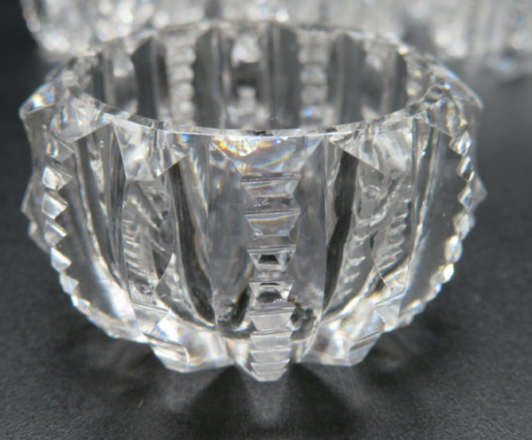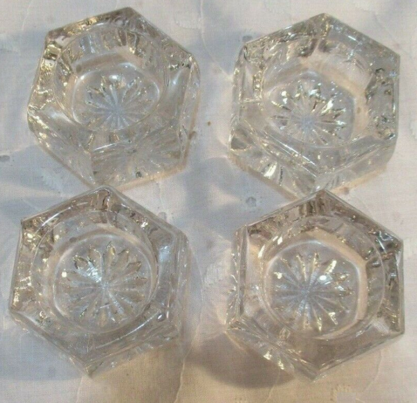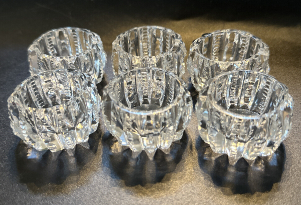 Lovely 1960’s vintage crystal open salt cellars. Nicely weighted and cut assorted sets. Round ribbed/ribbon and hexagon sunburst sets.