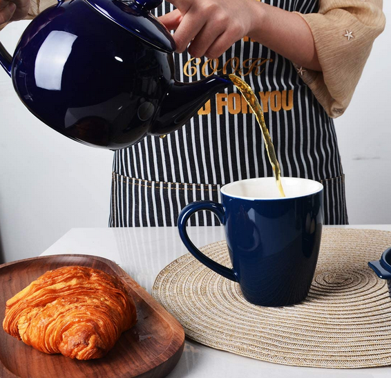 *SWEEJAR Round Porcelain Teapot w/Removable 18/10 SS Infuser 30oz. Black